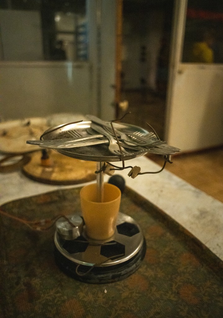 10 special speakers were attached to various kitchen appliances, and the space was equipped with a total of 24 LED lights. Exhibited as part of Hungerburg2024 festival (Tartu Uus Teater) 14th to 18th August 2024, in Mereranna holiday home, Narva-Jõesuu, Estonia.