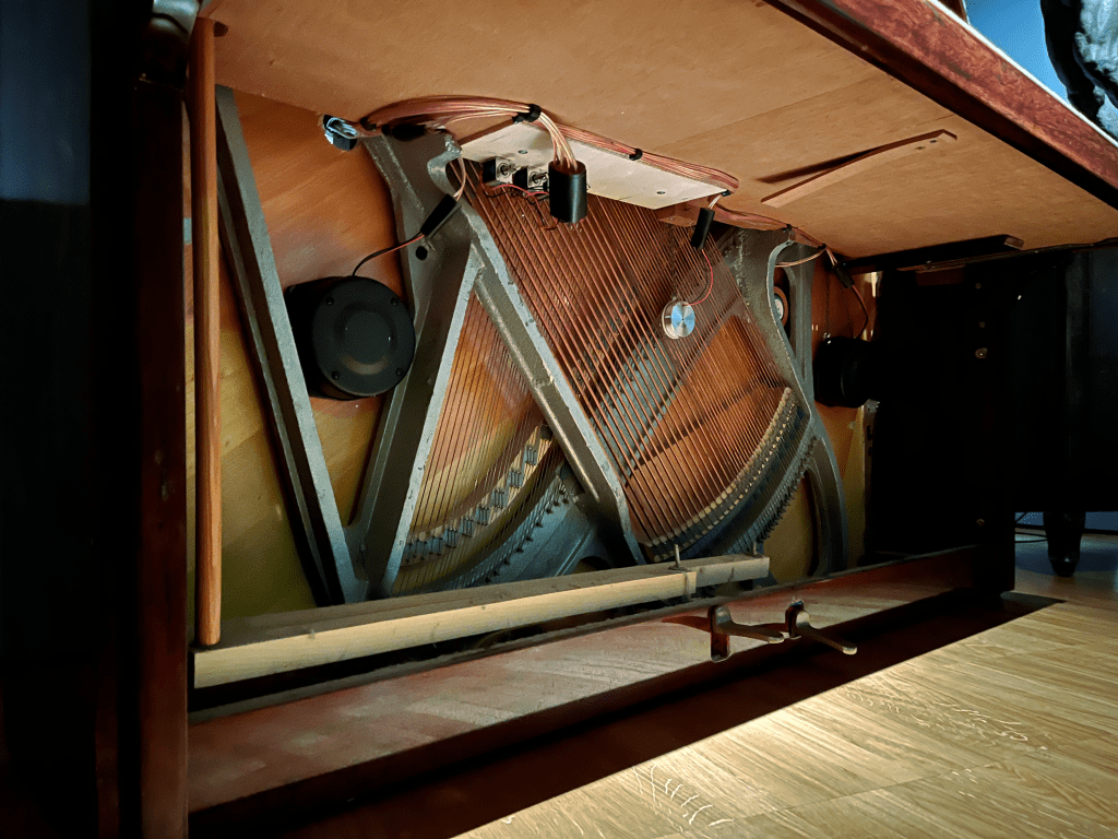 The Piano of Mr. N is an 8-channel sound art installation with music, built from an old upright piano, solenoids and vibration speakers. The installation is part of Urmas Lüüs’ exhibition The Life and Death of Mr. N: Bourgeois Spaces by Urmas Lüüs, exhibited from 4th October 2024 to 16th February 2025 at KUMU Art Museum in Estonia. Read more about the exhibition here.